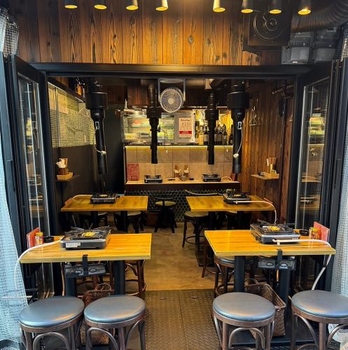【吹き抜けで楽しむ開放的な店内】夜風で季節を感じながら軍鶏焼肉♪バツグンの雰囲気の中で楽しめます。
